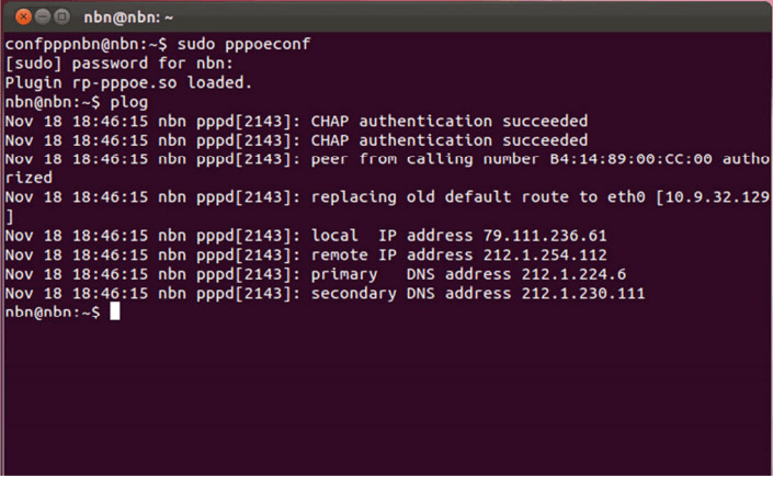 Также вы можете убедится в успешном подключении через PPPoE введя в терминале команду plog: