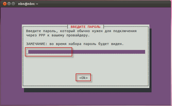 2. Для подтверждения запуска команду pppoeconf от супер пользователя root нас просят ввести пароль нашего непривилегированного пользователя.