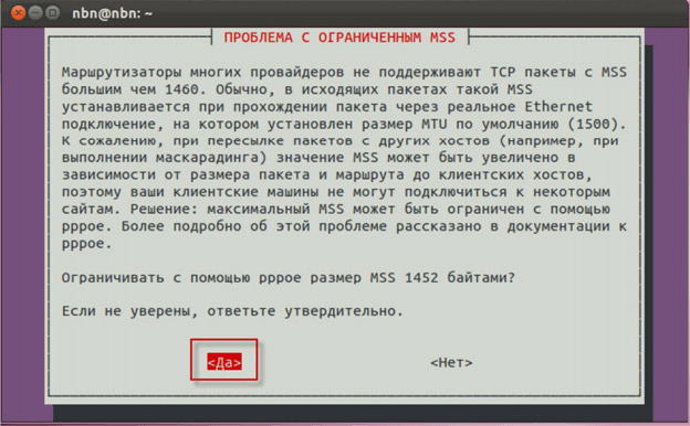 В случае ошибки вы сможете повторить настройку при помощи pppoeconf.