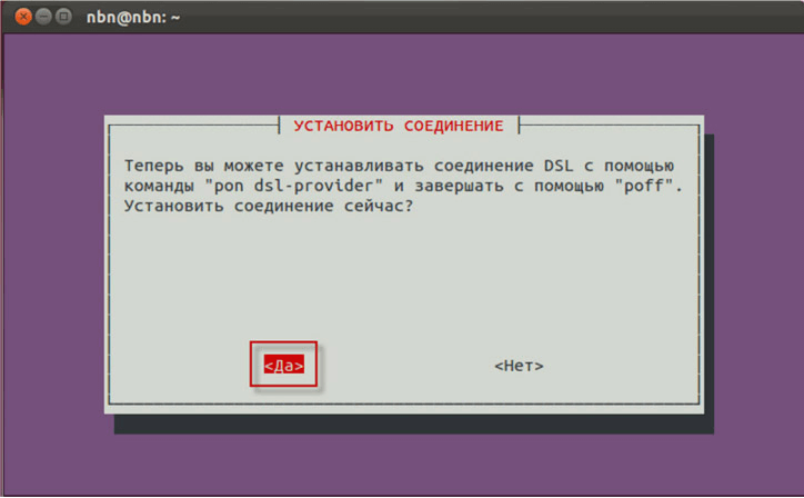 12. Напоминаем, что вы в любой момент можете разорвать соединение командой sudo poff dsl-provider и установить соединение командой sudo pon dslprovider.