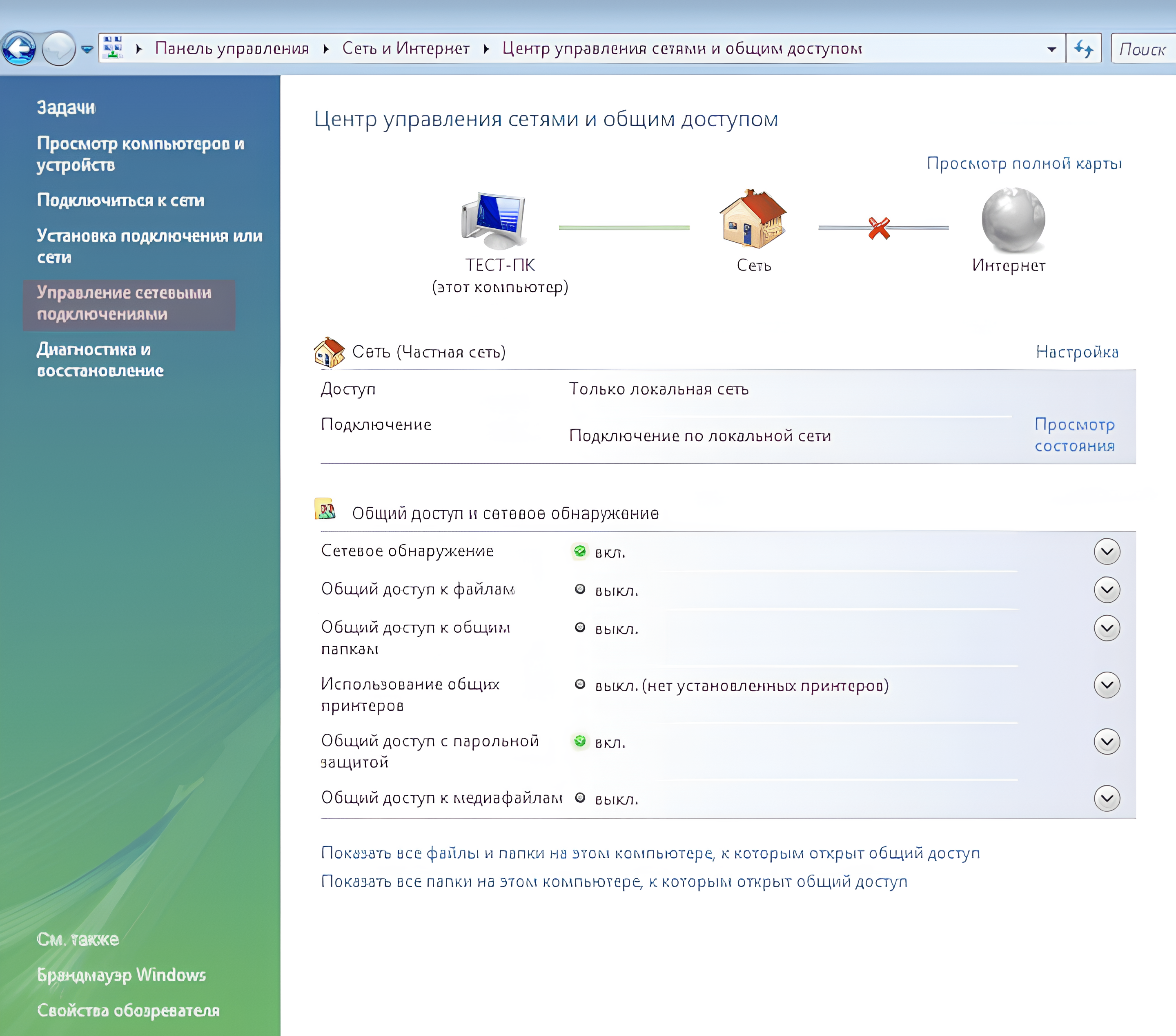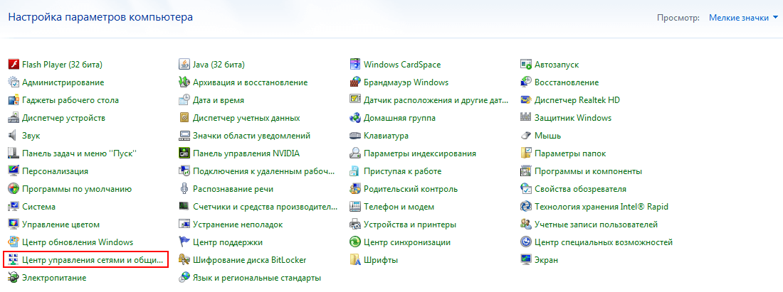 3. Если ярлыков в панели управления ~40, то «Центр управления сетями и общим доступом»