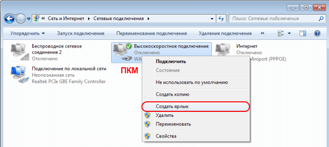 12. Правой кнопкой мыши по подключению, которое мы только что создали. Из списка выбрать пункт «Создать ярлык». Выскочит окно, предлагающее создать ярлык на рабочем столе, нажмите «Да».