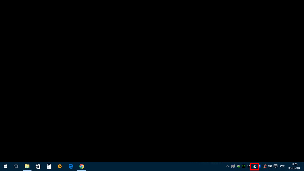 1. В правом нижнем углу рядом с часами находим значок подключения к сети и нажимаем на него левой кнопкой мыши