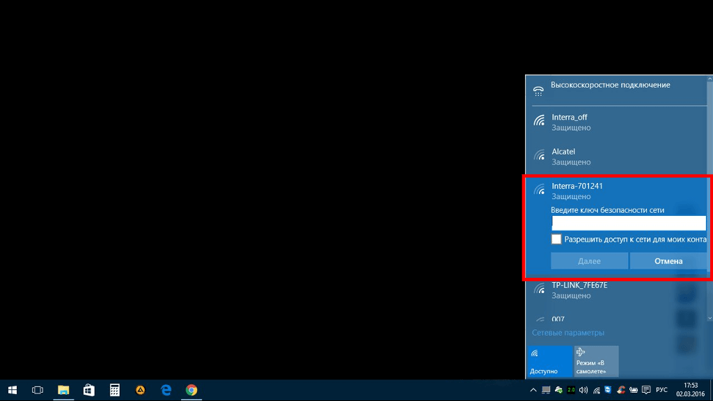 3. В появившемся окне вводим «Ключ безопасности» сети и нажимаем «Далее»