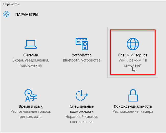 В открывшемся окне «Параметры» выберите «Сеть и Интернет»