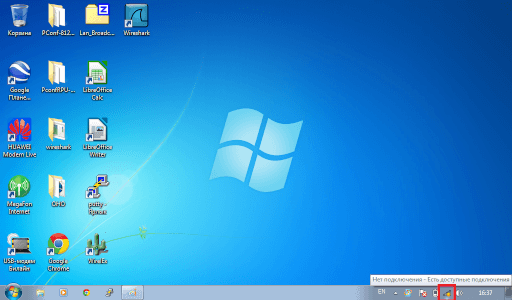 1. В правом нижнем углу рядом с часами находим значoк подключения к сети и нажимаем на него левой кнопкой мыши