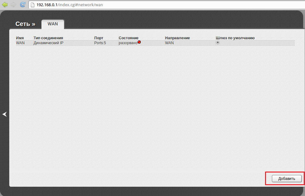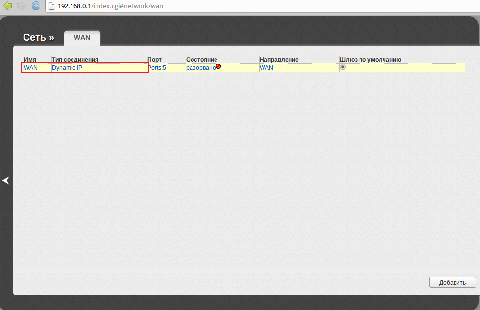 Где видим список соединений, нас пока интересует только WAN, щелкаем по нему