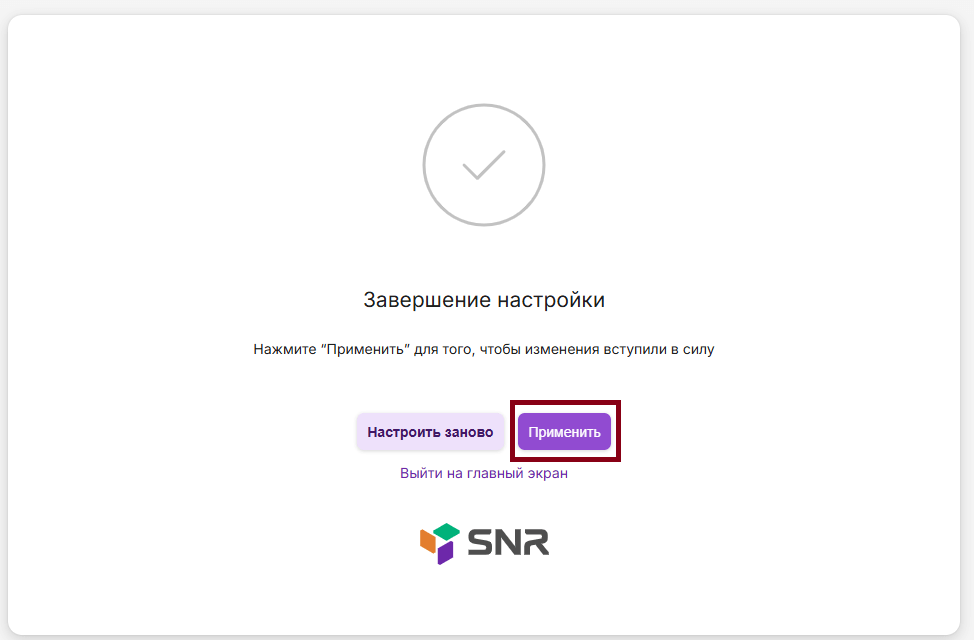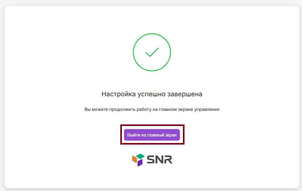 11. Если всё сделано правильно, выйдет сообщение об успешной настройке. Нажмите кнопку «Выйти на главный экран»