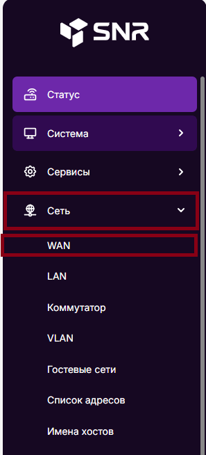 1. На главной странице в левом меню нажмите «Сеть» → «WAN»