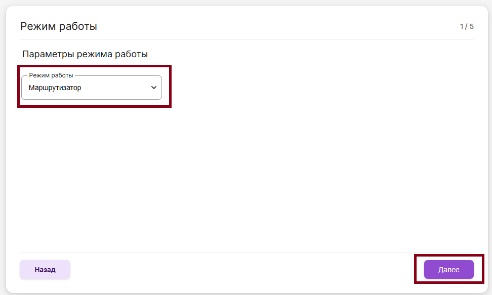 4. Выберите режим работы роутера «Маршрутизатор» и нажмите «Далее»