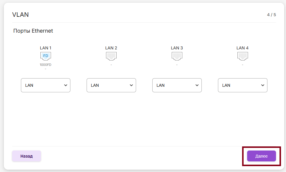 7. Параметры «VLAN», не трогаем. Нажимаем «Далее»