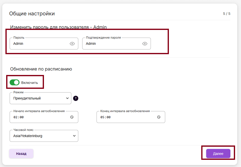 Обновление по расписанию можно отключить, или настроить время в которое роутер может обновляться. Нажимаем «Далее»