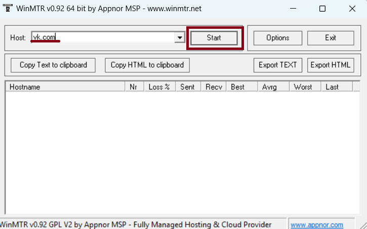 Распаковываем в удобное место. Запускаем файл WinMtr.exe