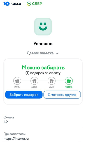 7. После успешной оплаты вас перенаправит обратно на страницу с сообщением «Успешно»