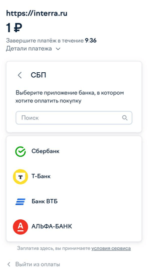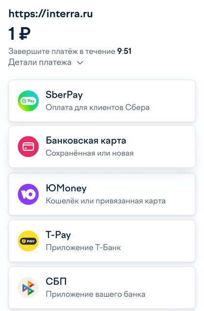 Вас перенаправит на страницу выбора платёжной системы. Оплату можно совершить любой Российской банковской картой (кредитная, дебетовая), с помощью СПБ, SberPay или T-PAY.